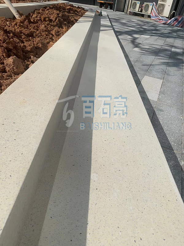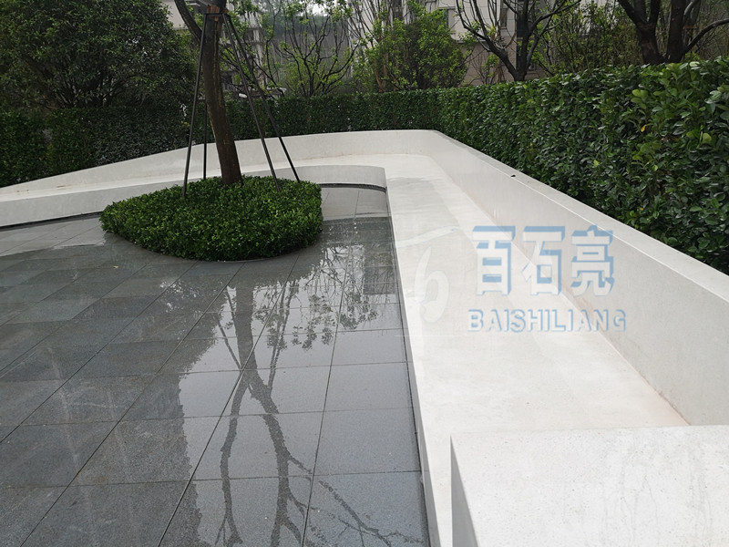 此項(xiàng)目位于重慶市北碚區(qū)蔡家的位于嘉陵江北畔,以坡地退臺(tái)式建筑,打造擁有超19公里一線江景的大平層、平墅、雙拼三大低密度的品質(zhì)住宅產(chǎn)品。水磨石采用白色骨料加白色背景為主打色。 這樣的搭配讓人感覺大方又得體,整個(gè)水磨石坐凳一次成型沒有一絲縫隙。