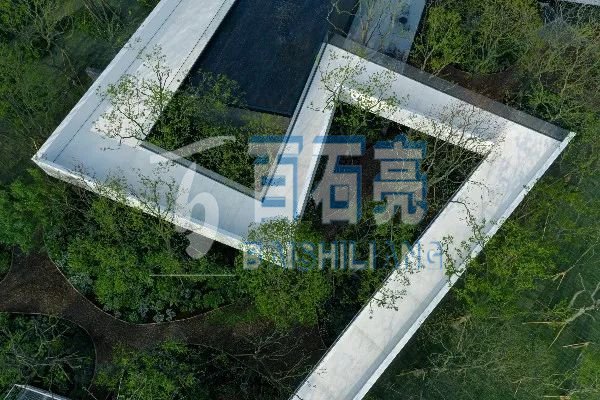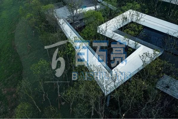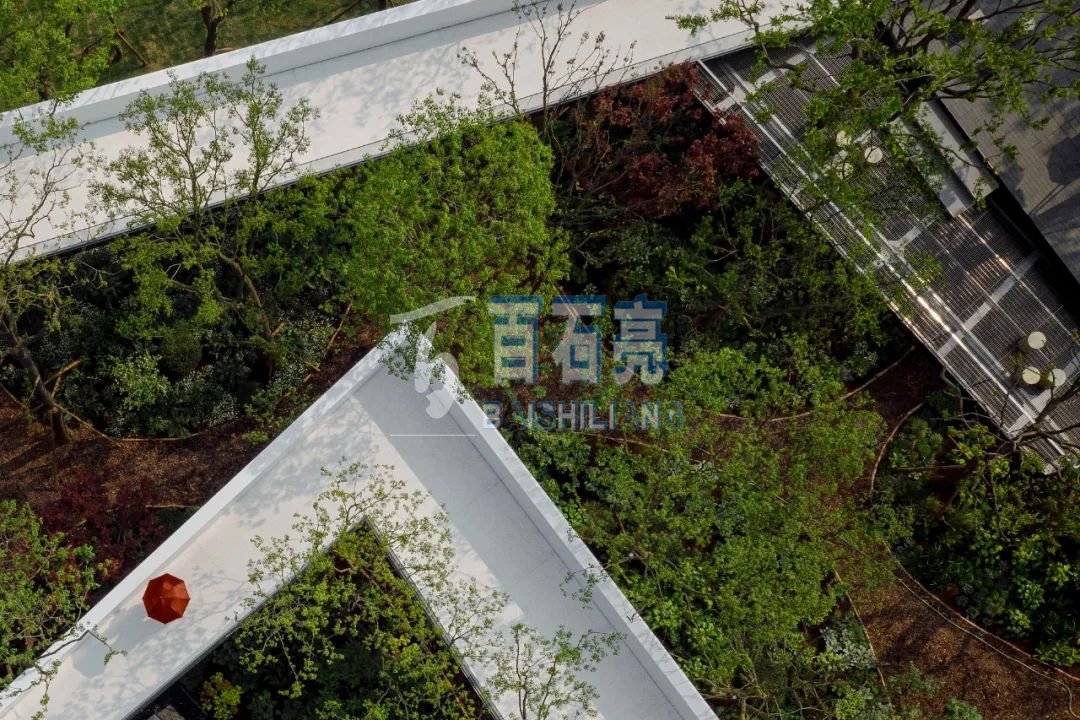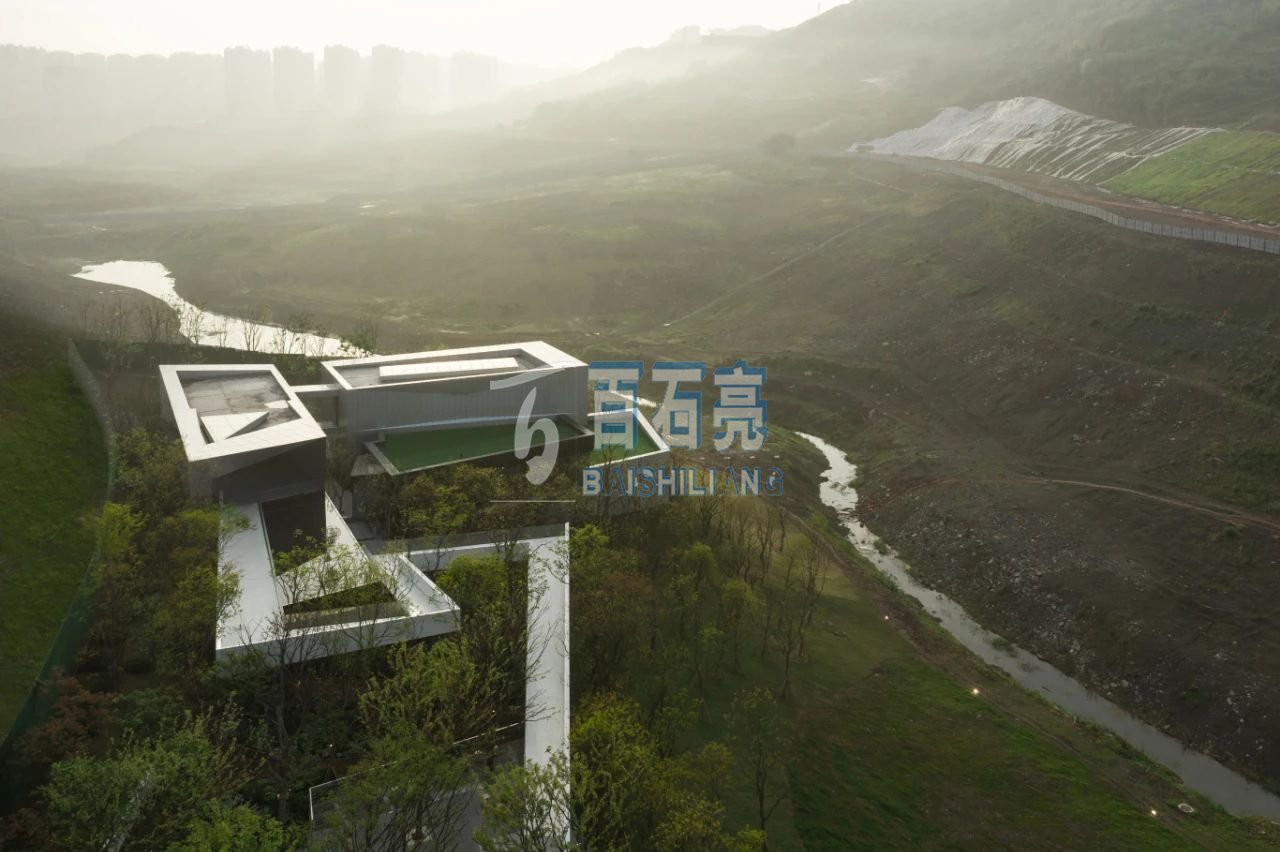 此項目位于重慶渝北區中央公園重慶龍湖龍湖.云瑤玉陛示范區,設計主題為白色為主,主材采用白色水泥+白色骨料。從遠處看白色水磨石好似山間的一抹“白云”,激活了山間的氛圍;白色水磨石又像一束柔白的光,指導著游人伴山而行。白色水磨石廊橋架于山坡之上,曲折蜿蜒,高低錯落與建筑統一融合。訪客在游走中,感受穿梭于樹梢上的野趣,運動將時間以它鮮活的流動狀態與空間連接,使他們能體驗到時空秩序感。