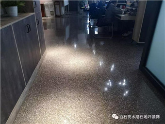 平整、光滑、質(zhì)地堅(jiān)硬、經(jīng)久耐用、使用壽命長(zhǎng)、色澤豐富、樸素大方、裝飾效果好,這些都是水磨石的特點(diǎn)。在這里可以說把水磨石的特性發(fā)揮到了最大化。辦公室人員絡(luò)繹不絕、辦公椅的來回滑動(dòng),都會(huì)和地面產(chǎn)生最直接的接觸,我們的水磨石地面不但沒有因?yàn)轭l繁的摩擦而損壞,反而更加的色澤光亮。