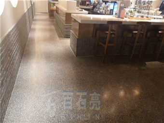 從樣品的選擇到現場分格條的設計到最終成形,都離不開我們每一位同事的辛勤付出。灰水泥和黑色石子的簡單搭配更加襯托出壹丁的設計風格。我們的團隊本著敬業、質量優先的原則,把平平無奇的地面裝扮得格調優雅、亮眼十足,和四周的配色簡單的桌椅搭配十足。