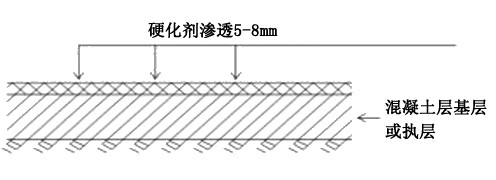 百石亮混凝土鋼化地坪結構圖 百石亮混凝土鋼化地坪滲透滲透原理剖面圖