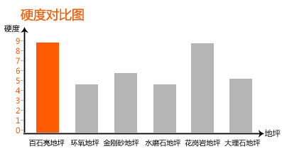 混凝土鋼化地坪硬度達到9級莫氏硬度,耐磨度按GB9966.4-88達到6.03,因而混凝土耐磨地坪經得起鐵釘硬物的刮劃。