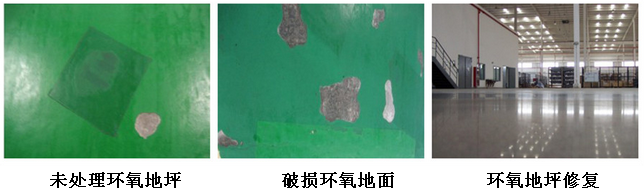 2、局部修復無遺漏:充分檢查環氧地坪改造地面無遺漏修復處。