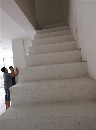 現在我們就要欣賞一下我們百石亮施工團隊給大家帶來的水磨石梯步的施工花絮